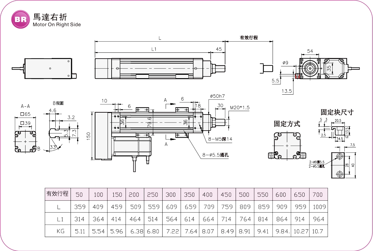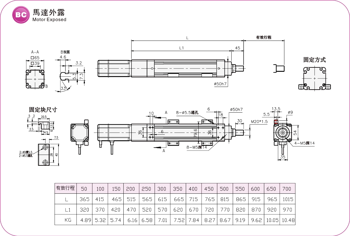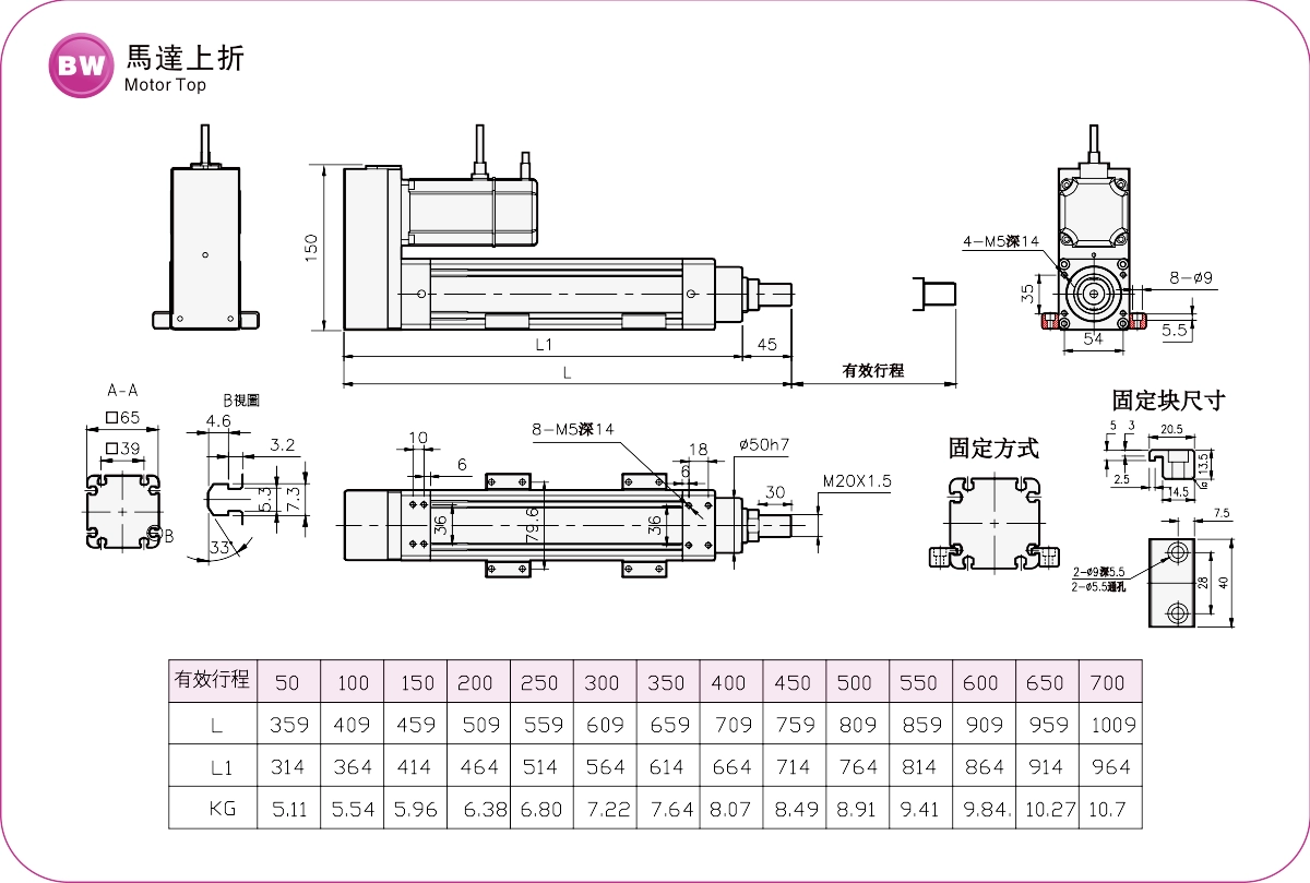 Диапазон перемещения: 50-700 мм