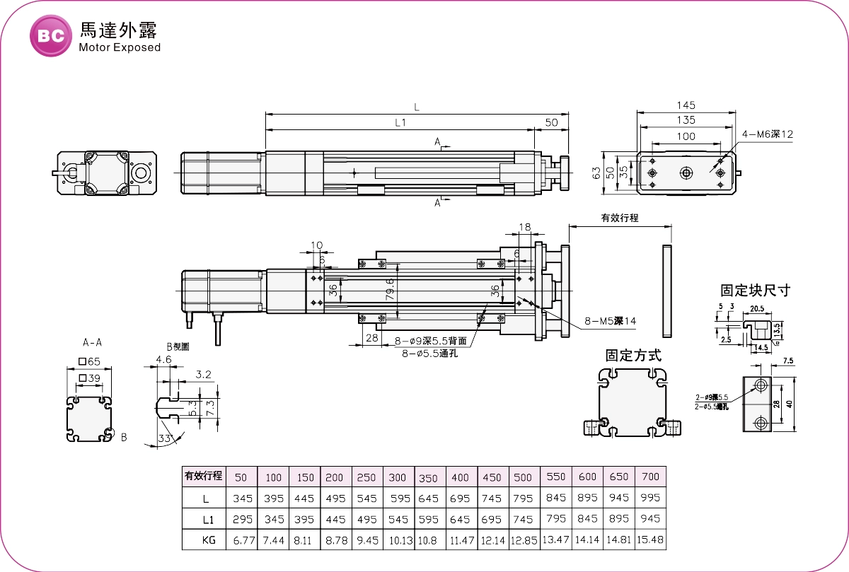 Диапазон перемещения: 50-700 мм