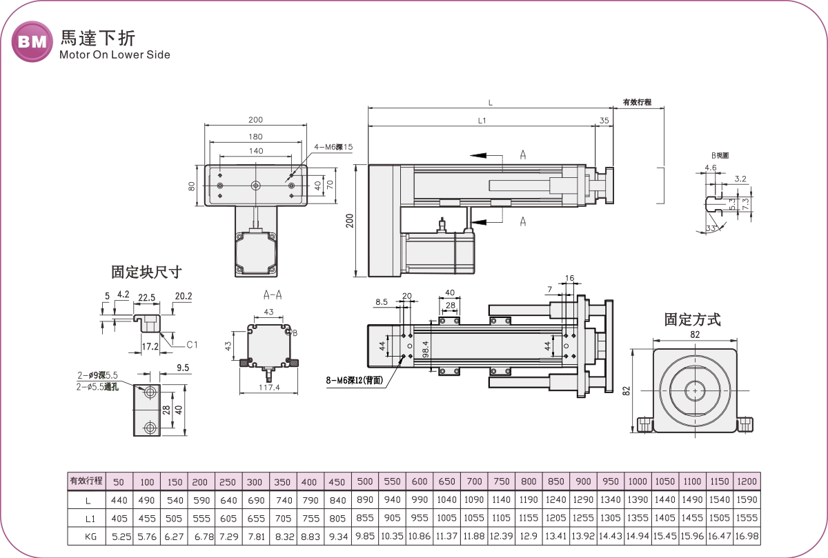 Диапазон перемещения: 50-1200 мм
