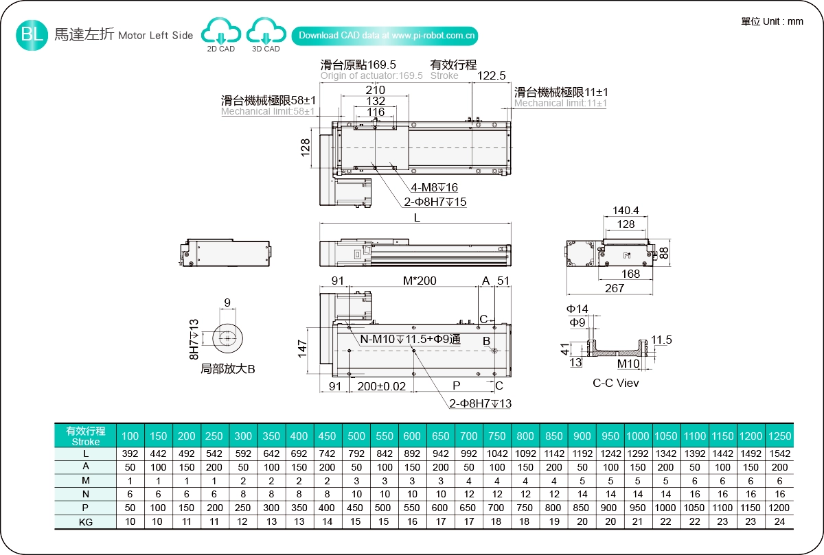 | Диаметр шарикового винта (мм) | C7Ø20 | |||||