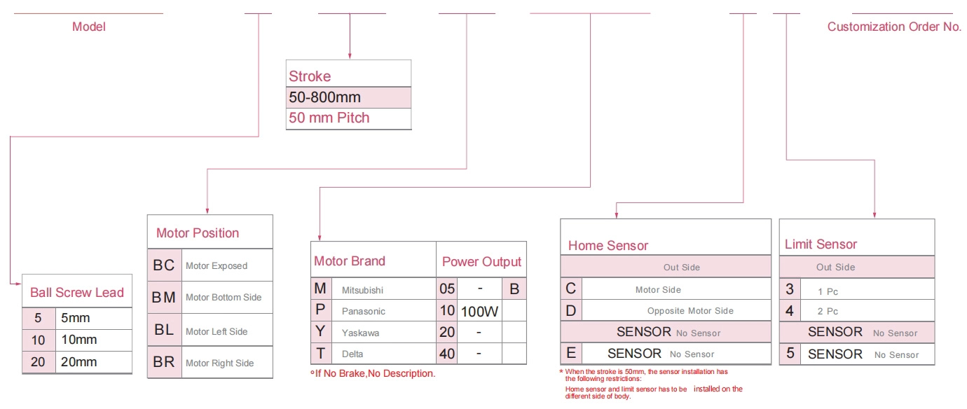 | Использовать там, где | Режим движения | Технические характеристики модели | Выход двигателя (в) | Ширина (мм) | Рост тела (мм) | Повторяемость (мм) | Технические характеристики шарикового винта | Максимальная полезная нагрузка (кг) | Максимальная скорость (мм/с) *1 | ||||||||||