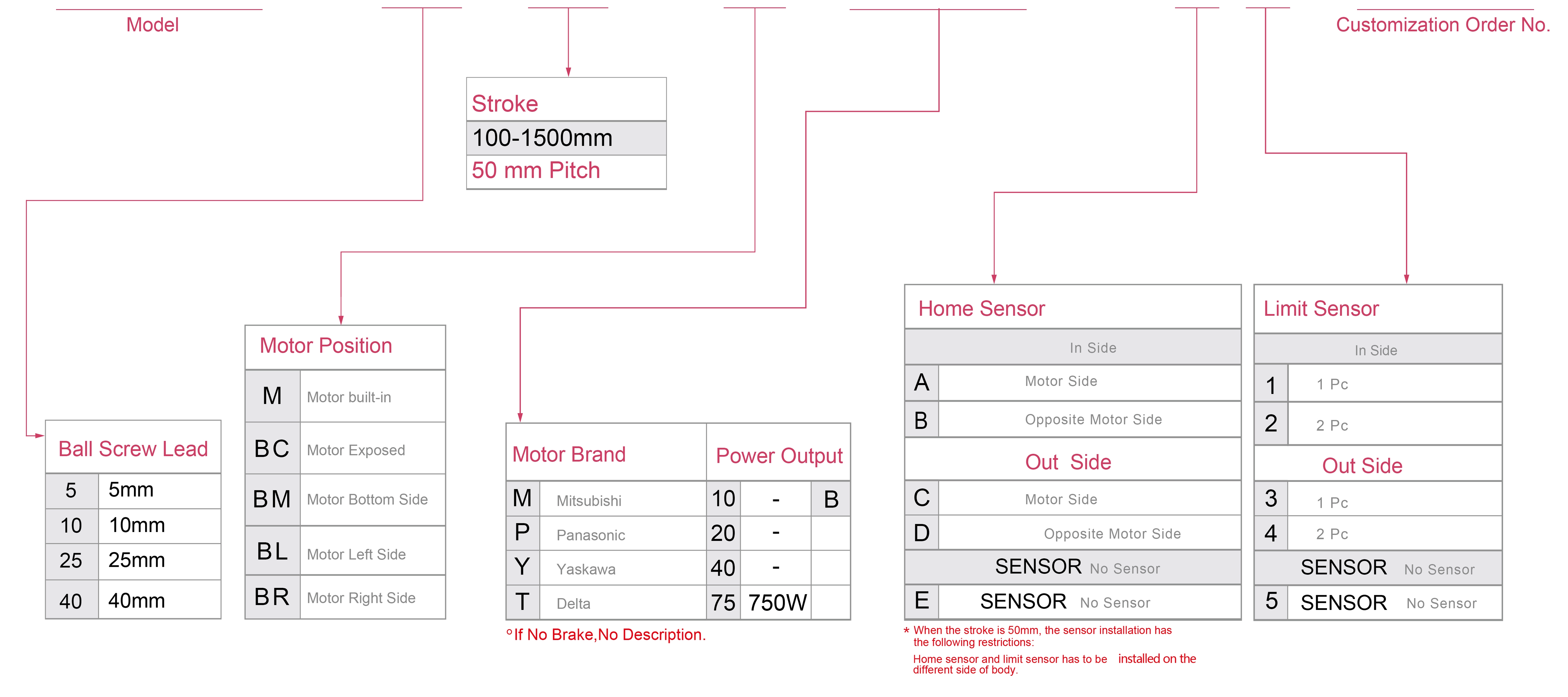 | Использовать там, где | Режим движения | Технические характеристики модели | Выход двигателя (в) | Ширина (мм) | Повторяемость (мм) | Технические характеристики шарикового винта | Максимальная полезная нагрузка (кг) | Максимальная скорость (мм/с) *1 | ||
