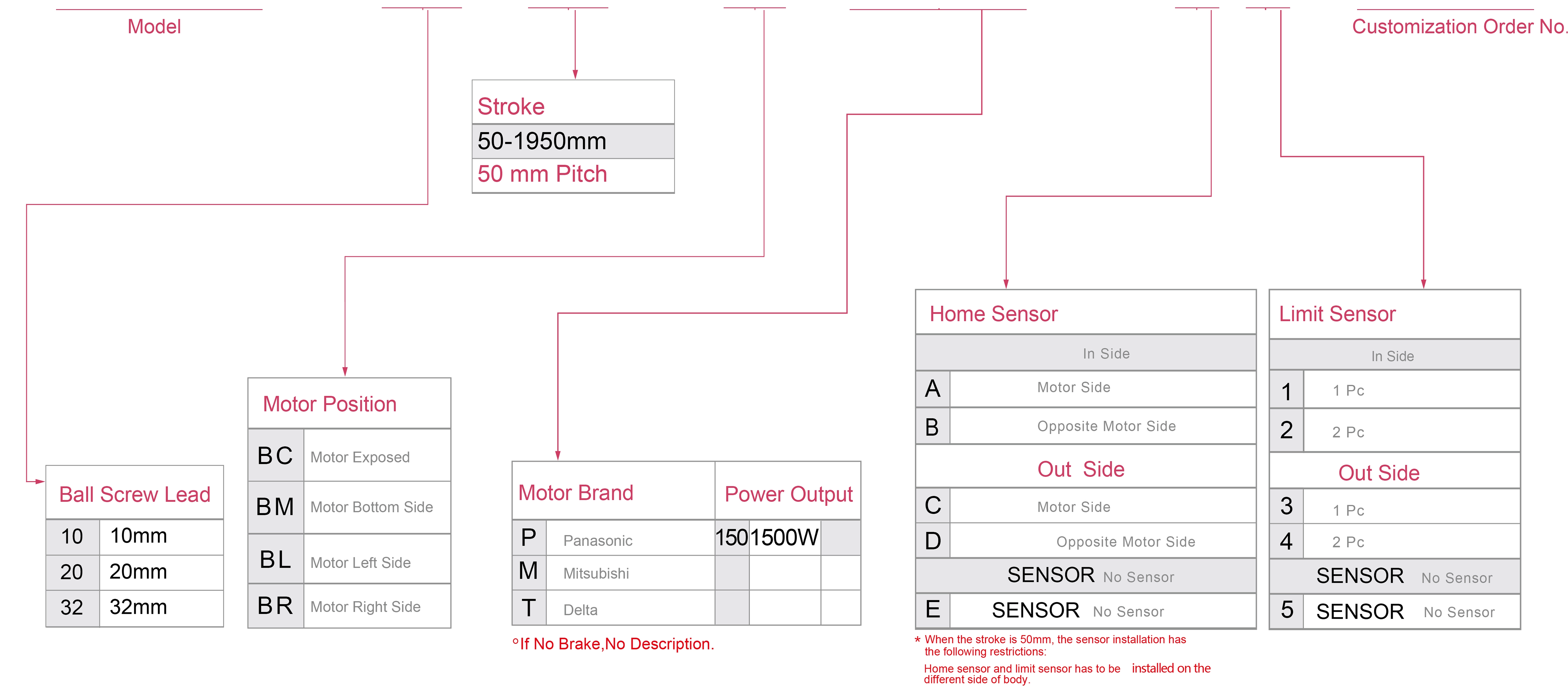 | Использовать там, где | Режим движения | Технические характеристики модели | Выход двигателя (в) | Ширина (мм) | Повторяемость (мм) | Технические характеристики шарикового винта | Максимальная полезная нагрузка (кг) | Максимальная скорость (мм/с) *1 | ||