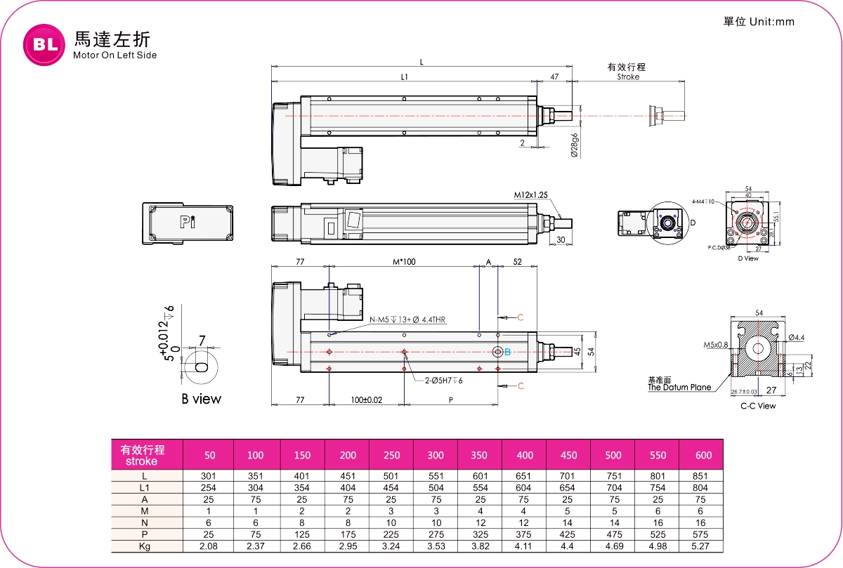 Диапазон перемещения: 50-600 мм
