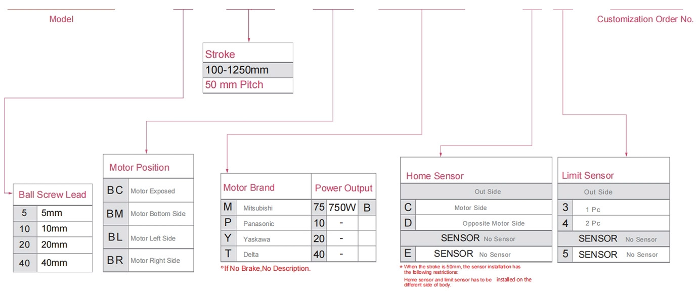 | Использовать там, где | Режим движения | Технические характеристики модели | Выход двигателя (в) | Ширина (мм) | Повторяемость (мм) | Технические характеристики шарикового винта | Максимальная полезная нагрузка (кг) | Максимальная скорость (мм/с) *1 | ||