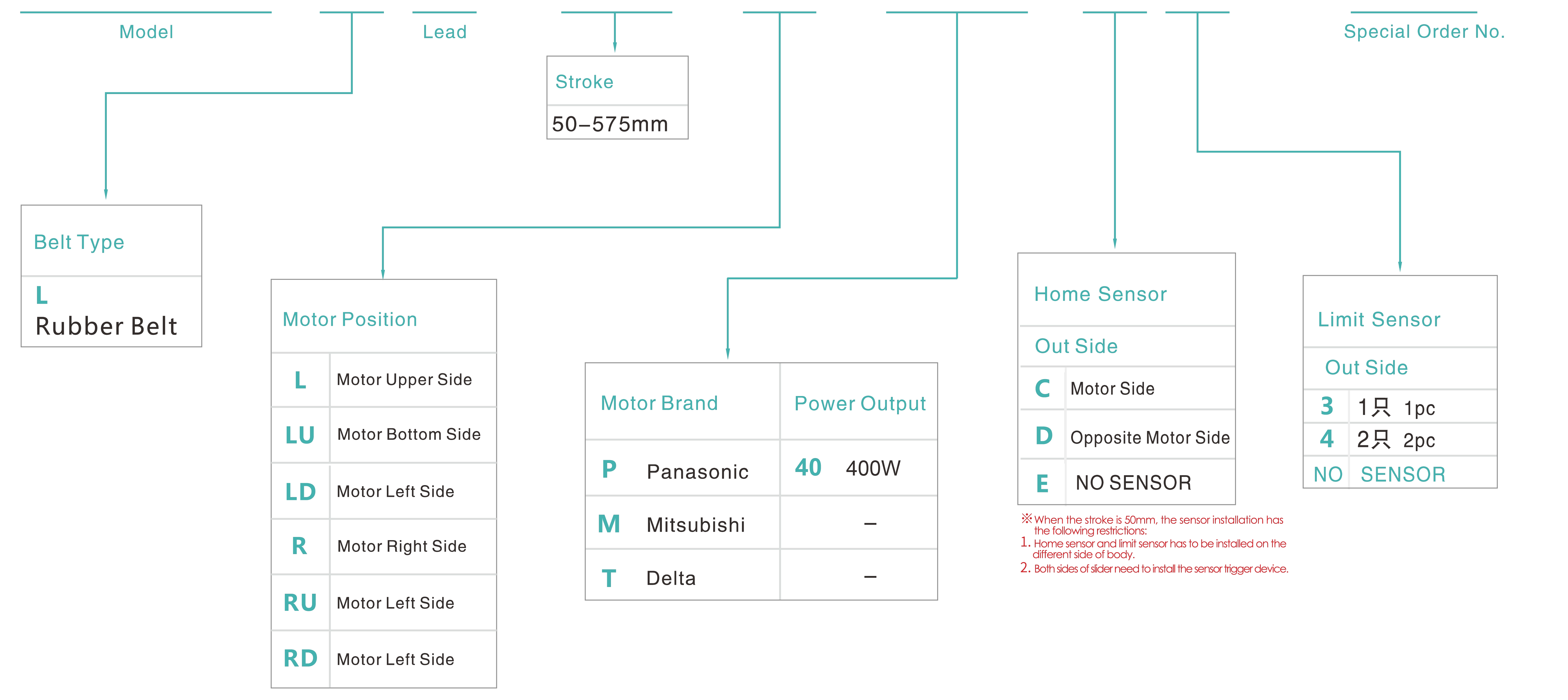 | Использовать там, где | Режим движения | Технические характеристики модели | Редукционный механизм | Выход двигателя (в) | Ширина (мм) | Повторяемость (мм) | Технические характеристики ремня | Максимальная полезная нагрузка (кг) | Максимальная скорость (мм/с) *1 | ||