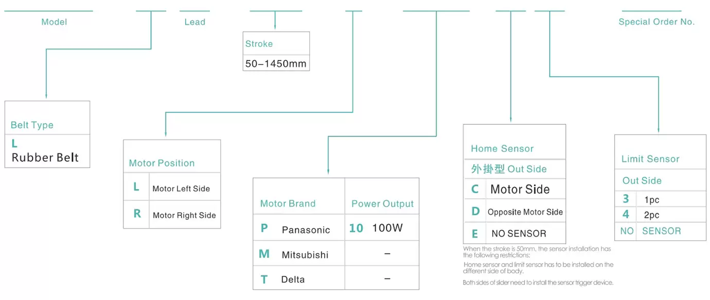 | Использовать там, где | Режим движения | Технические характеристики модели | Редукционный механизм | Выход двигателя (в) | Ширина (мм) | Повторяемость (мм) | Технические характеристики ремня | Максимальная полезная нагрузка (кг) | Максимальная скорость (мм/с) *1 | ||