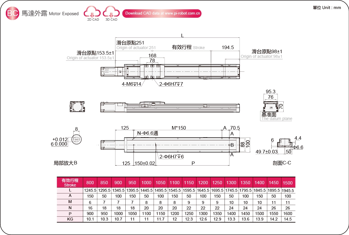 | Высокопрочная линейная направляющая (мм) | Шариковинтовой привод | |||||