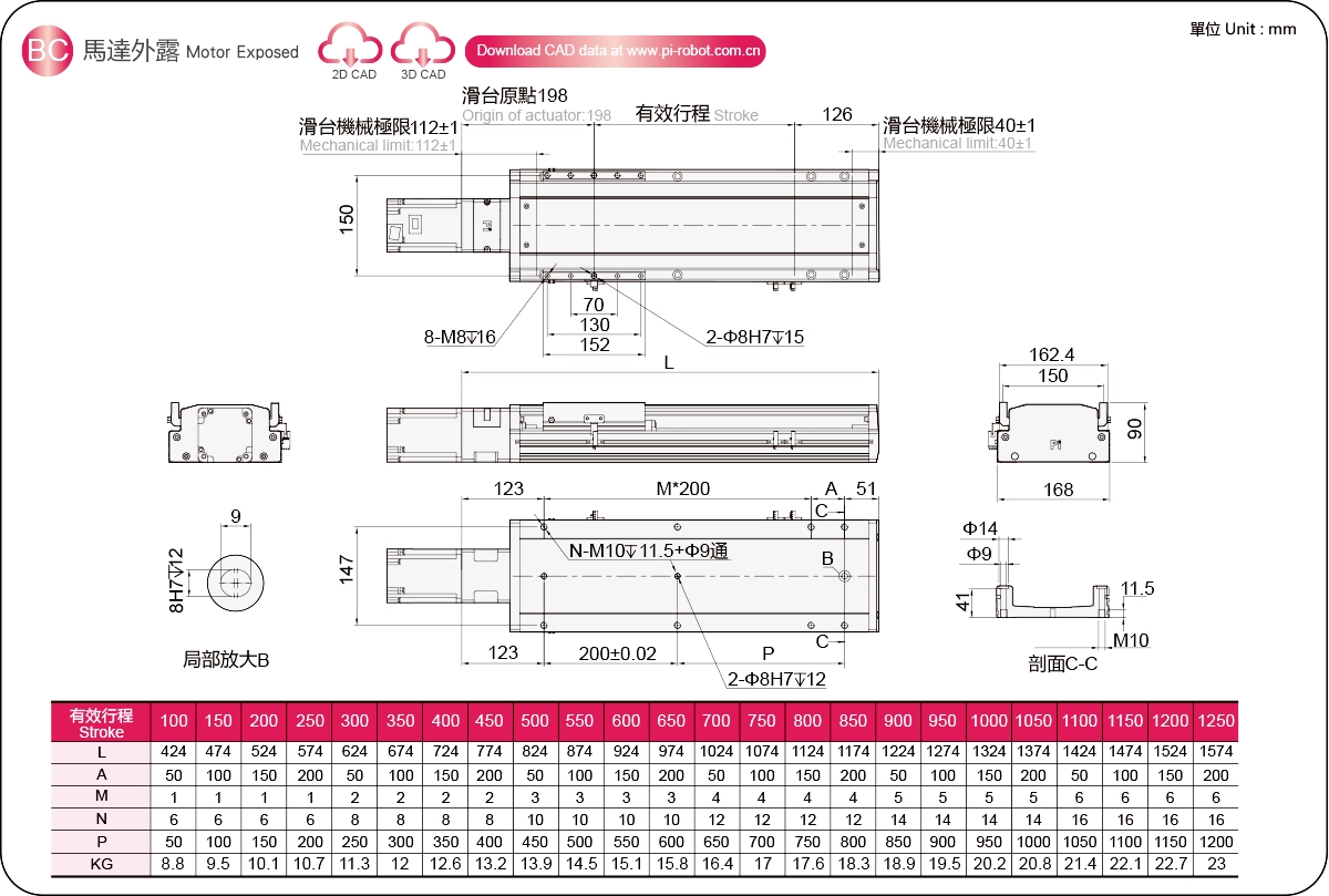 | Диаметр шарикового винта (мм) | C7Ø20 | |||||