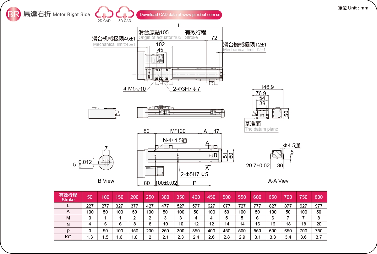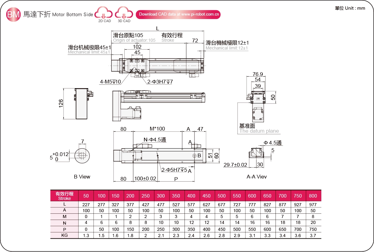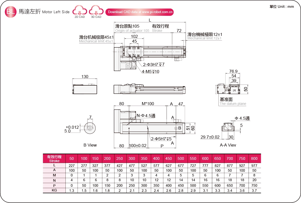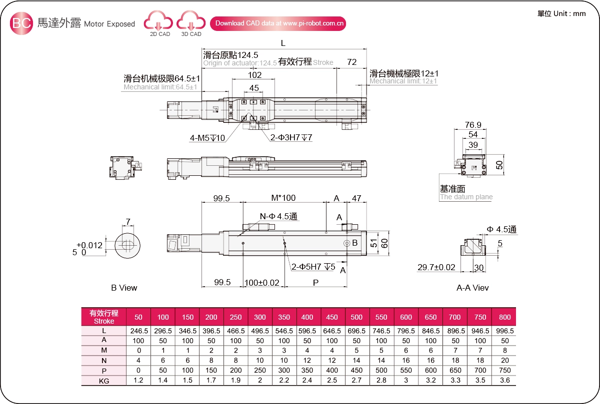 Диапазон перемещения: 50-800 мм