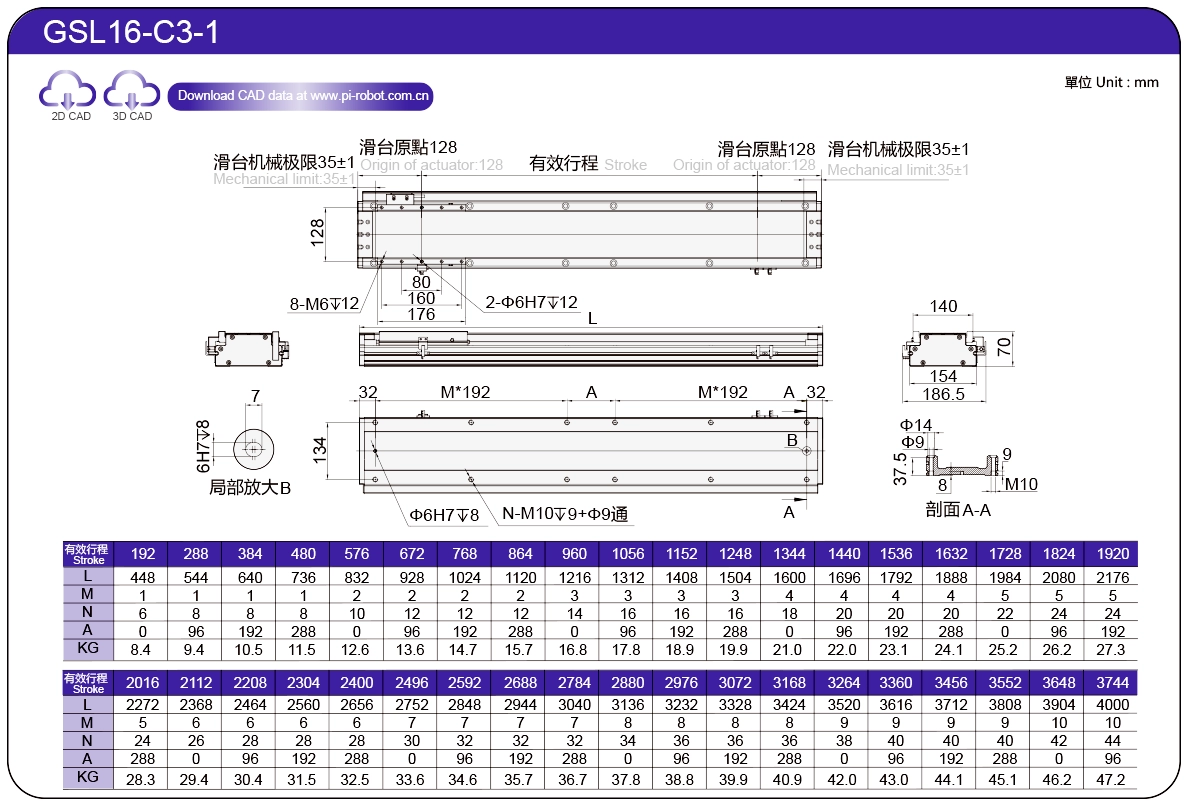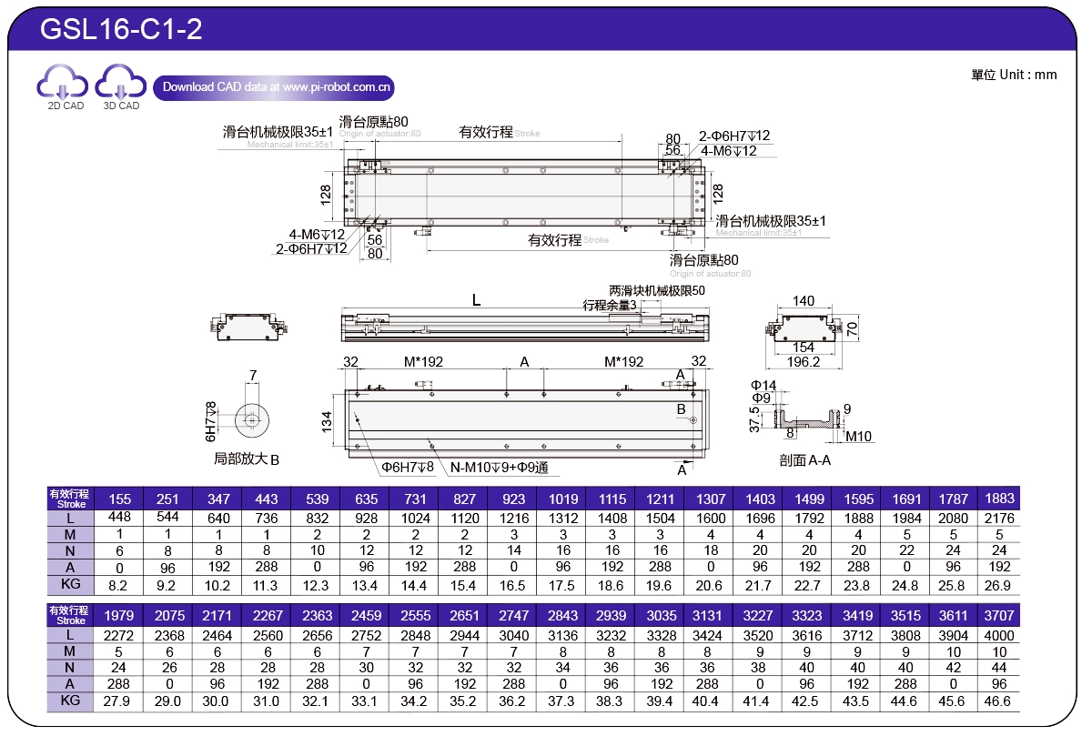 | Стандарт | Робот с линейным двигателем | GSL7 | П27-С1 | 75 | 65 | ±0,003 | 26 | 57 | 3.3 | 6 | 2500 |