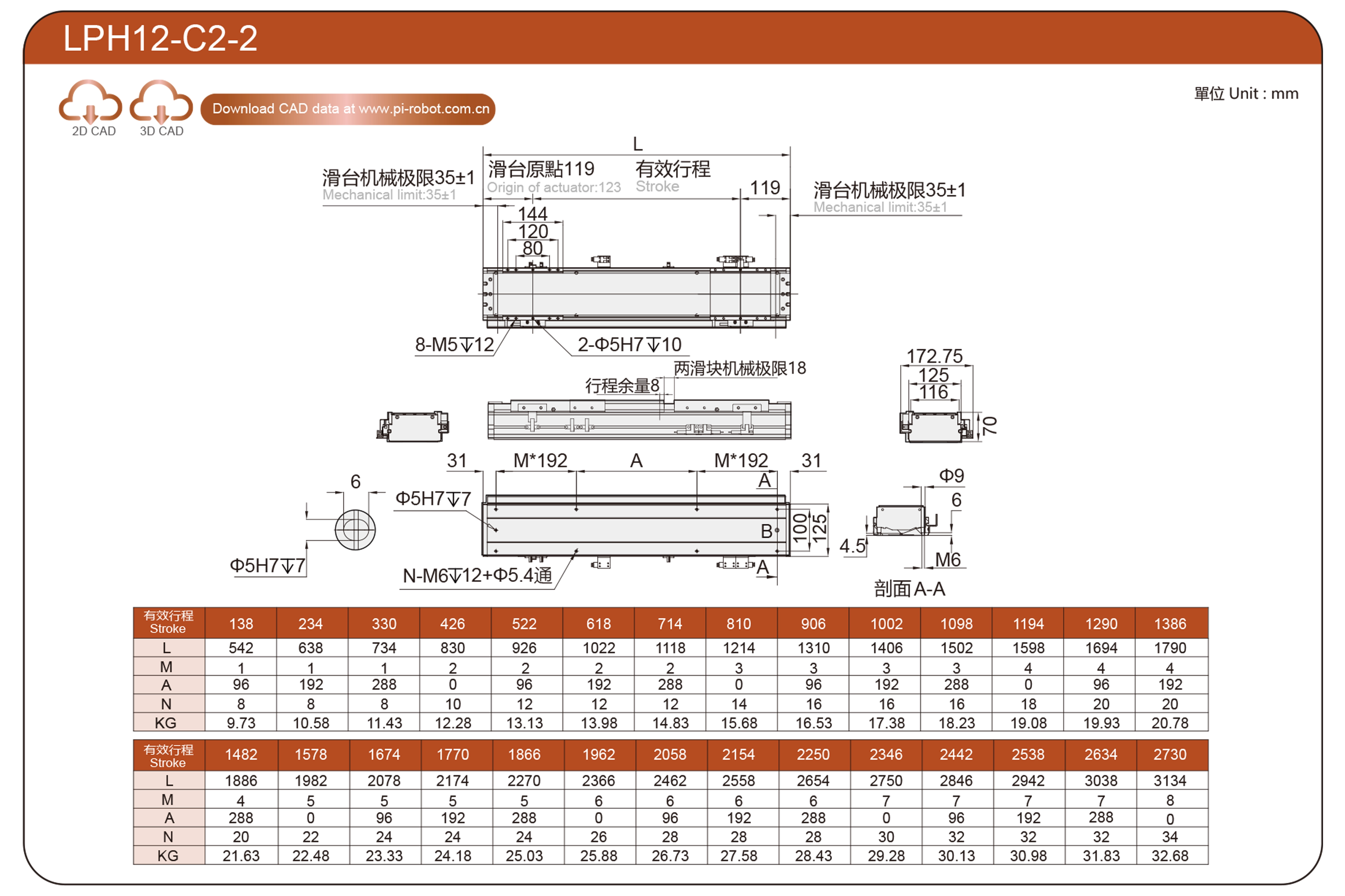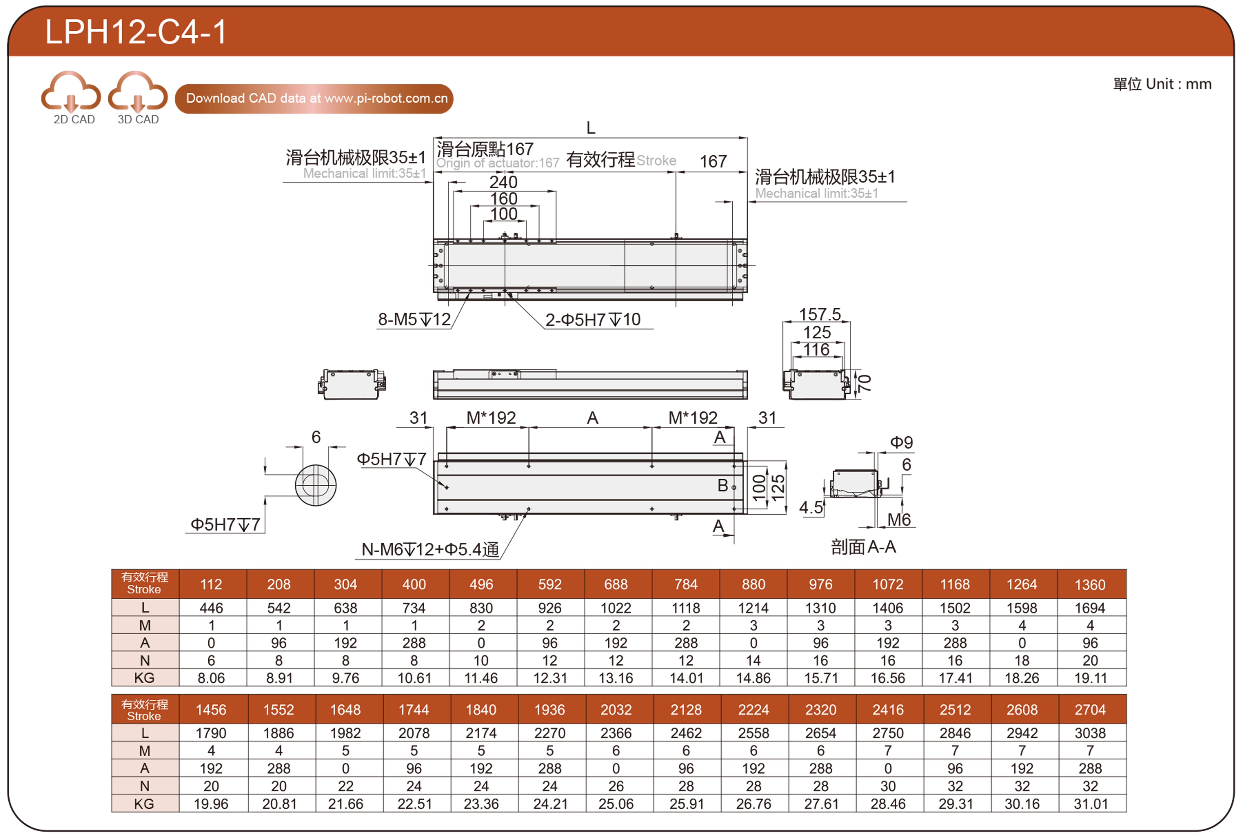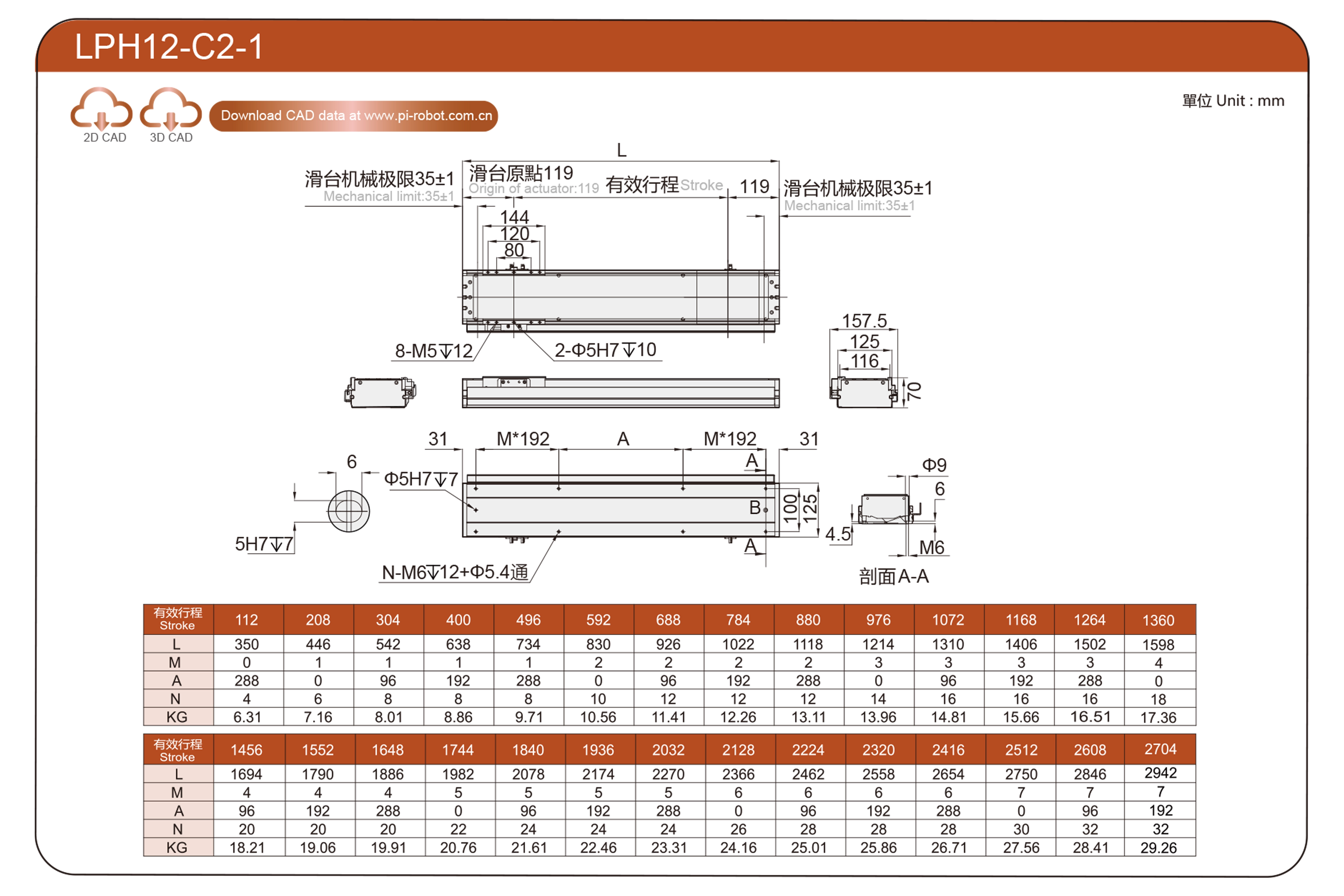 | Стандарт | Робот с линейным двигателем | ЛФ12 | P40-C2-S | 125 | 70 | ±0,003 | 80 | 176 | 3.3 | 20 | 2500 |