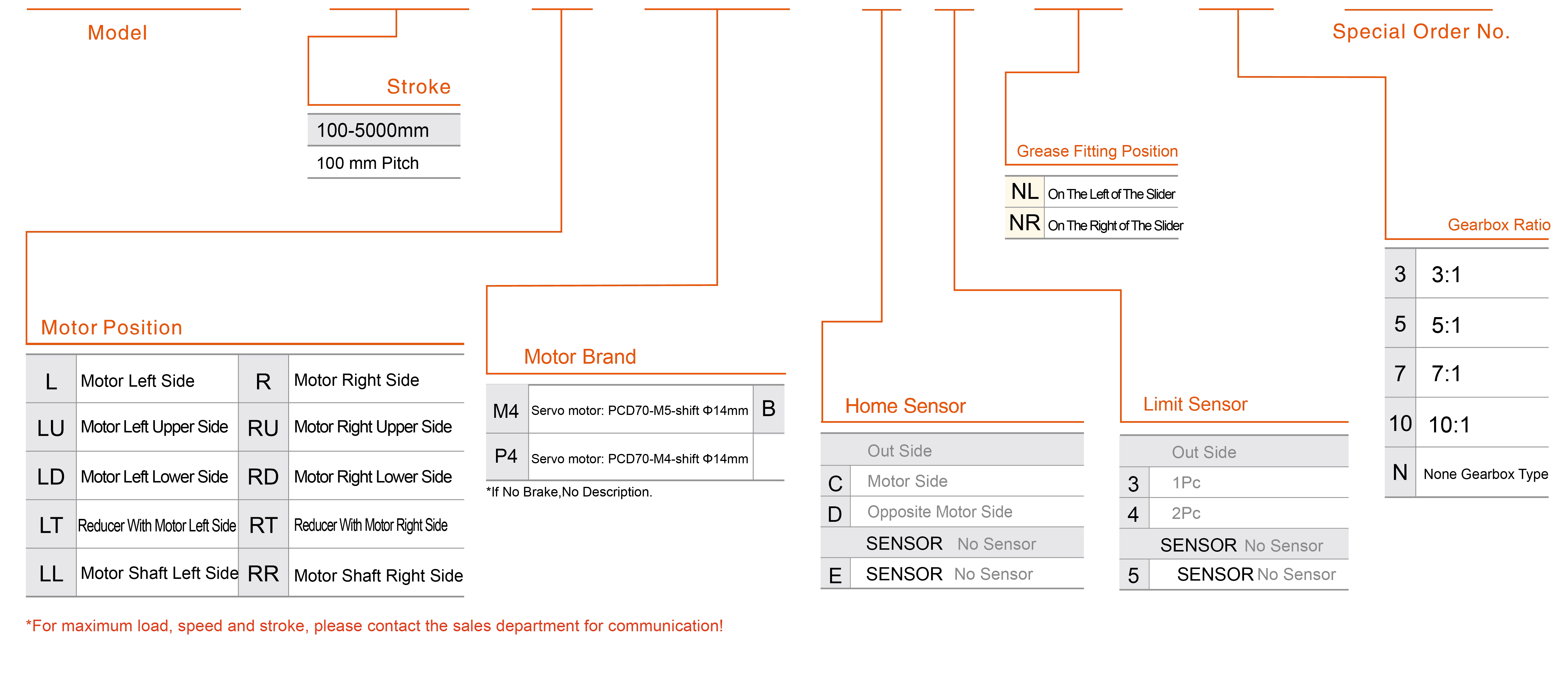 | Использовать там, где | Режим движения | Технические характеристики модели | Редукционный механизм | Выход двигателя (в) | Ширина (мм) | Повторяемость (мм) | Технические характеристики ремня | Максимальная полезная нагрузка (кг) | Максимальная скорость (мм/с) *1 | ||