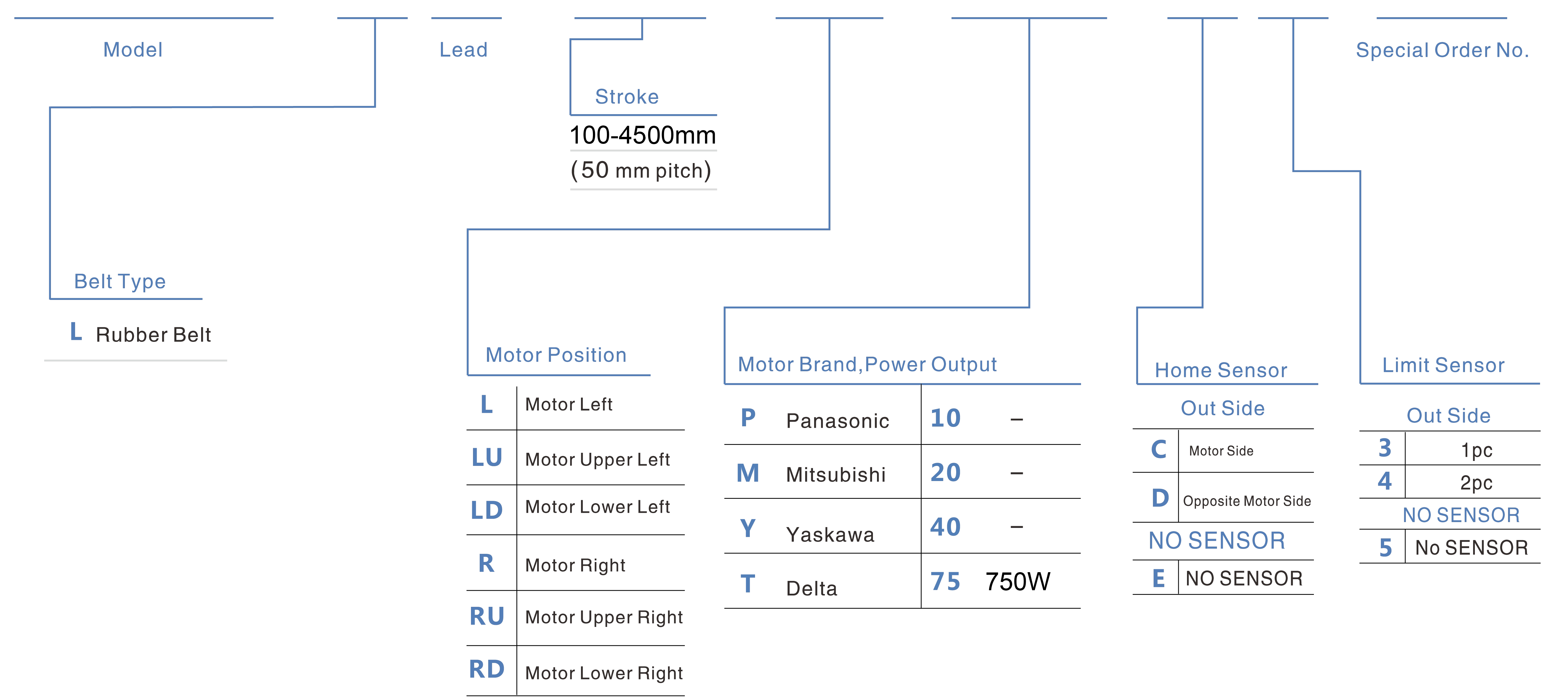 | Использовать там, где | Режим движения | Технические характеристики модели | Редукционный механизм | Выход двигателя (в) | Ширина (мм) | Повторяемость (мм) | Технические характеристики ремня | Максимальная полезная нагрузка (кг) | Максимальная скорость (мм/с) *1 | ||