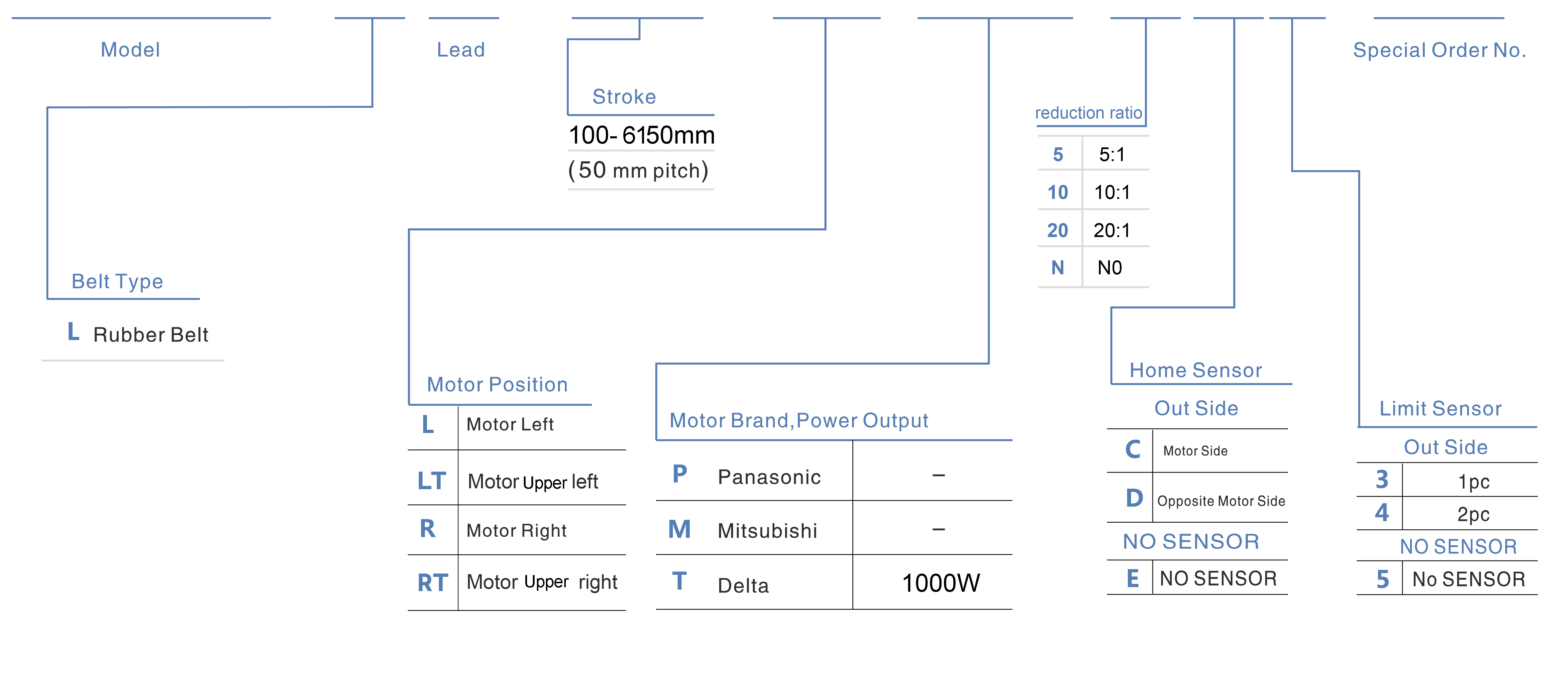 | Использовать там, где | Режим движения | Технические характеристики модели | Редукционный механизм | Выход двигателя (в) | Ширина (мм) | Повторяемость (мм) | Технические характеристики ремня | Максимальная полезная нагрузка (кг) | Максимальная скорость (мм/с) *1 | ||