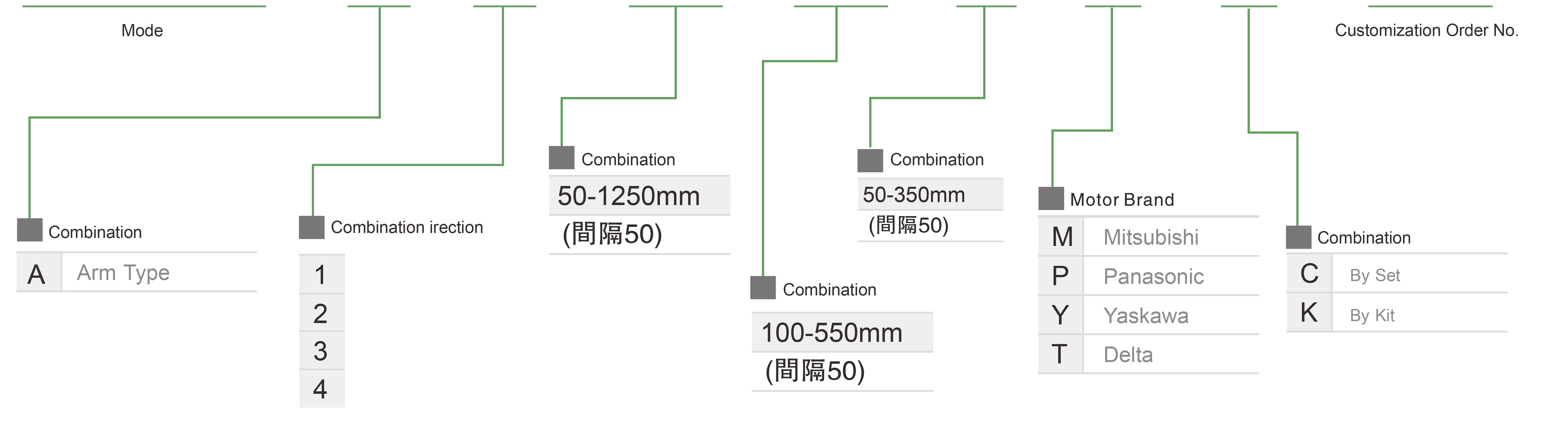 | Использовать там, где | Режим движения | Технические характеристики модели | Комбинация | Номера осей | Вести | Максимальная скорость (мм/с) | Ход поршня (мм) | ||||||
